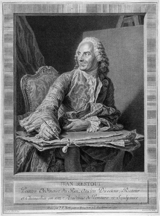 RESTOUT, Jean (1692 - 1768). - Kniestück nach dreiviertellinks des Malers und Direktors der Akademie in Paris, sitzend beim Zeichnen.
