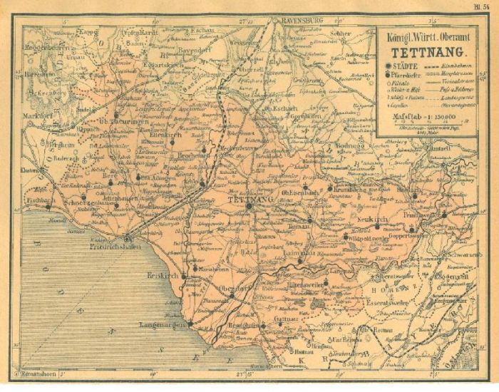 TETTNANG. - Karte. - Königl. Württ. Oberamt Tettnang.