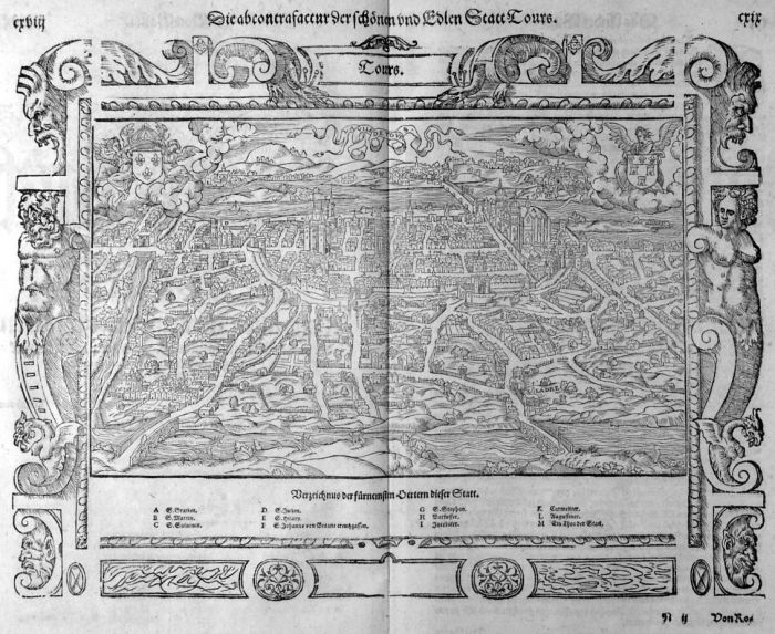 Die abcontrafactur der schönen und Edlen Statt Tours. Gesamtansicht in ornamentaler Bordüre.