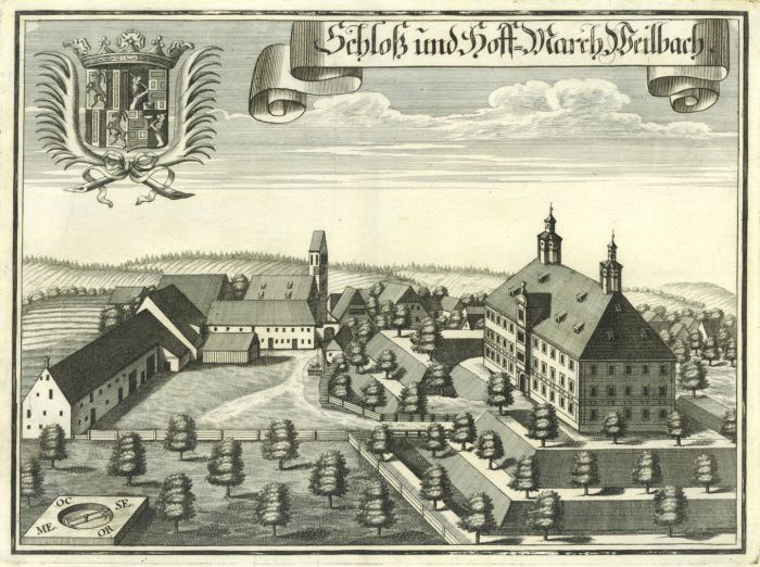UNTERWEILBACH/bei Dachau. - Schloß und Hoff-March. Gesamtansicht.